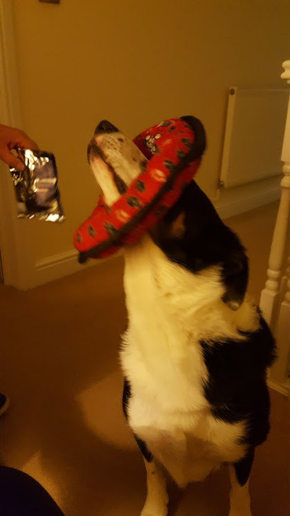 Well today i came to work full of the dreaded cold. Sat feeling sorry for myself between orders i was aware that Jazz my faithful trusty friend who comes to work with me every day was playing with his new toy. I thought i would share a couple of photos of him with you. It certainly cheered me up and if it only cheers one more person up it was well worth doing this blog.