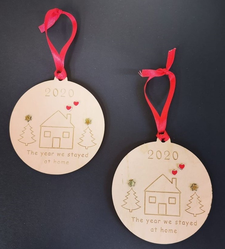 Christmas bauble tree decoration engraved with the year we all stayed home. Wooden 8cm Complete with a ribbon for hanging. Listing is for one decoration.