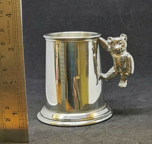 Pewter Teddy Handle Christening Tankard