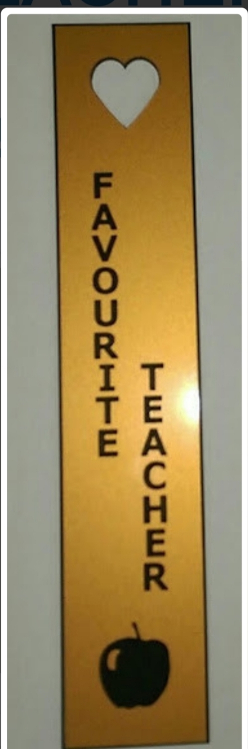 Gold laminate book mark ideal for end of term or christmas gift. Measures 36mm x 180mm with an engraved apple and a cut out heart.
